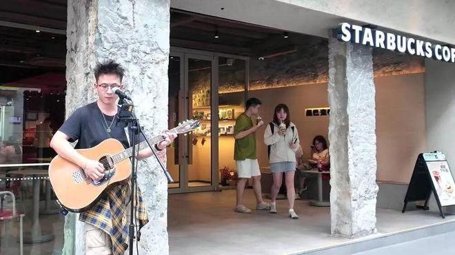 吉他乐手演奏经典曲目,并设置“秋日助唱”环节,选取热门乐曲邀请游客现场点歌。